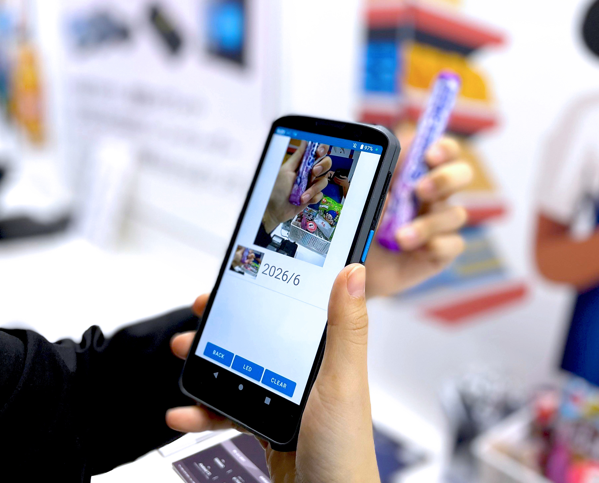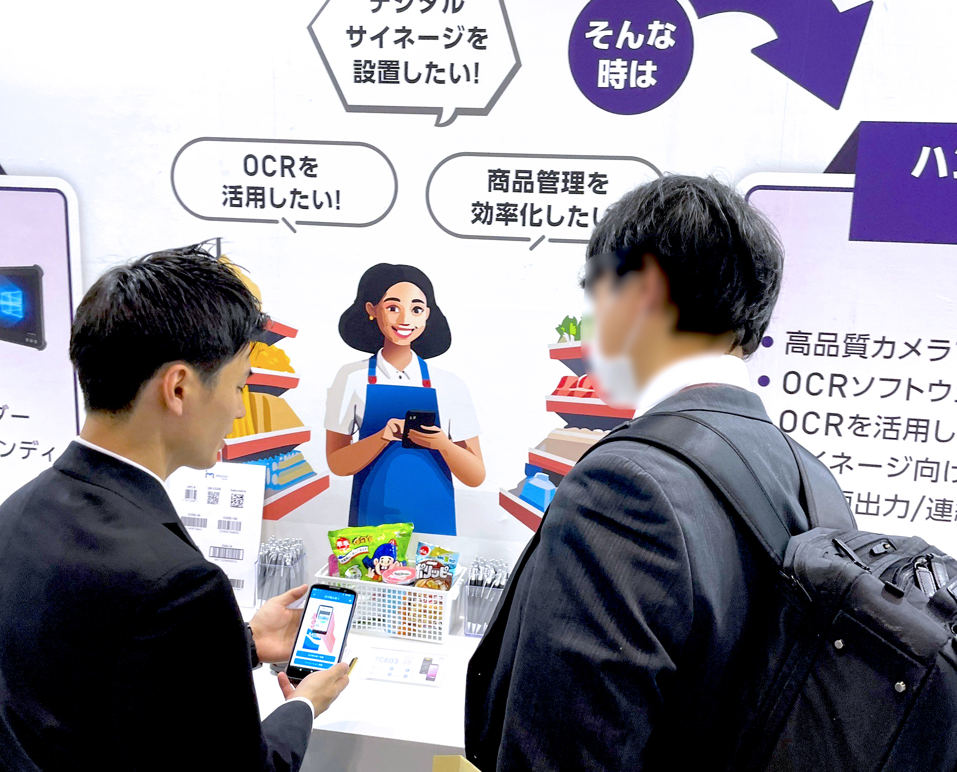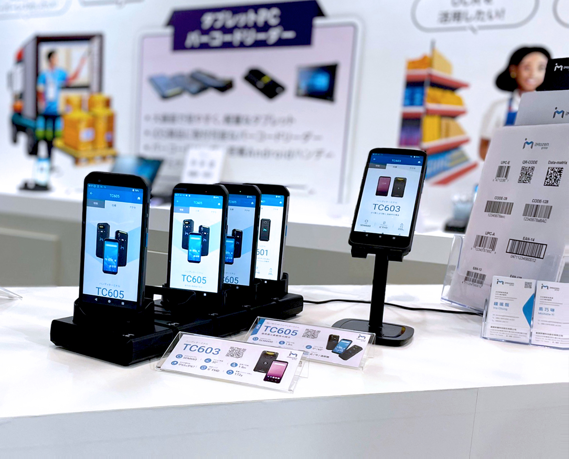 創捷前瞻科技(iMozen Group)特別為日本市場開發的輕量型 TC603 手持行動電腦,其掃描器採用 30 度傾斜角度配置,符合人體工學設計,可舒緩手腕部的疲勞感,提升工作效率。此外,iMozen 還展示了 iMozen OCR(Optical Character Recognition)字元辨識工具,透過手持行動電腦掃描貨品標籤上的有效日期,降低人工抄寫或登打失誤的風險,大幅減少工作時間並降低人力成本。iMozen MDM 行動裝置管理軟體平台等,幫助零售商提高工作效率和管理效率。